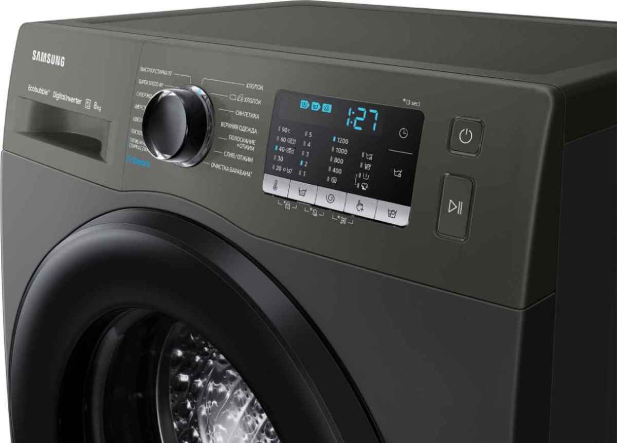 Цвет этой стиральной машинки — серый. В данной модели Samsung используется барабан Swirl. Мотор: Инверторный. Благодаря ему машина работает тише, потребляет меньше электроэнергии, сохраняя при этом необходимую мощность.