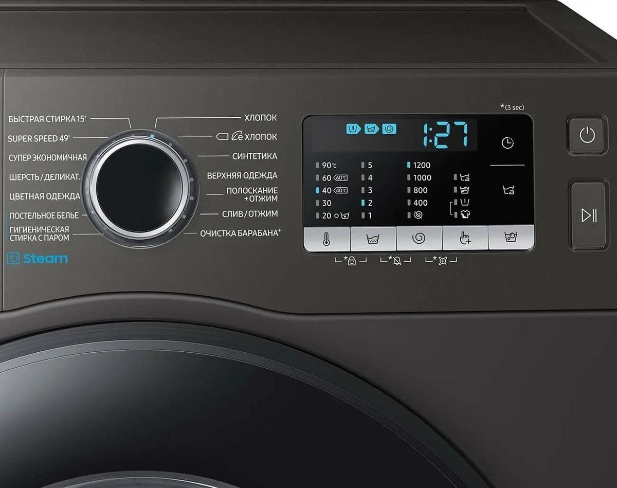 Вы можете отложить запуск, если хотите сэкономить на тарифах и включить машинку ночью, либо если планируете развесить белье сразу после возвращения работы и не ждать, пока закончится цикл. На панели управления отображаются разнообразные индикаторы, чтобы было проще следить за процессом, например: выбранной программы, включения и выключения. Скорость отжима достигает 1200 оборотов в минуту. Функцию отжима можно будет отключить вручную, если она вам не нужна.