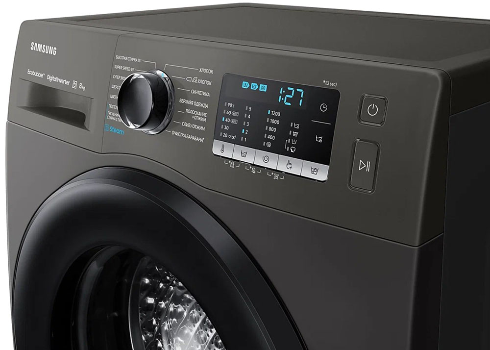 Электромеханическое управление удобно и понятно. Производитель внедрил интеллектуальную систему контроля, с помощью которой данная модель автоматически улучшает все рабочие процессы. В вашем распоряжении: Технология EcoBubble. Для выбора программ используются кнопки, поворотный переключатель. Количество режимов для стирки разных типов белья: 14.