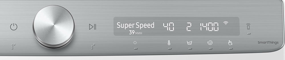 Супербыстрая стирка является полноценной программой, включающей основной этап, полоскание и отжим. Температура воды не превышает 30 градусов, так что нагрев не требует много времени. Стирка и полоскание производятся достаточно интенсивно, а отжим выполняется на максимальной скорости. В ряде моделей для ускорения набора воды используется быстрое впрыскивание, а в моделях от Samsung для смачивания белья применяется пузырьковая стирка с быстрым вспениванием воды.