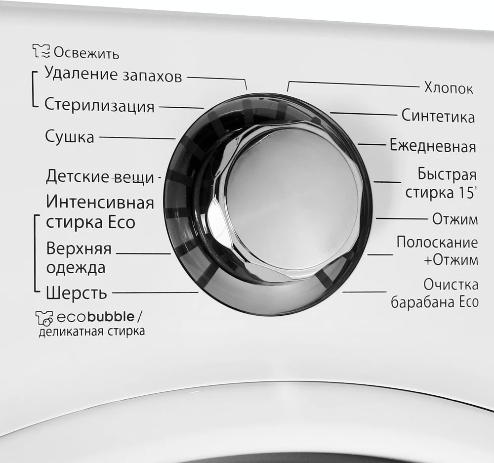 Электронное управление удобно и понятно. Производитель внедрил интеллектуальную систему контроля, с помощью которой данная модель автоматически улучшает все рабочие процессы. В вашем распоряжении: Технология EcoBubble. Для выбора программ используются кнопки, поворотный программатор. Количество режимов для стирки разных типов белья: 14.