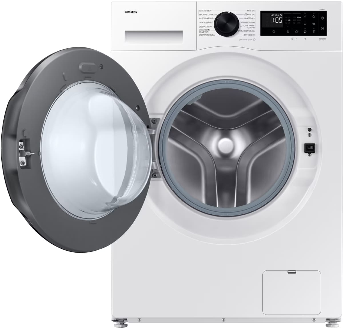 Цвет этой стиральной машинки — белый. В данной модели Samsung используется барабан Swirl. Мотор: Инверторный. Благодаря ему машина работает тише, потребляет меньше электроэнергии, сохраняя при этом необходимую мощность.