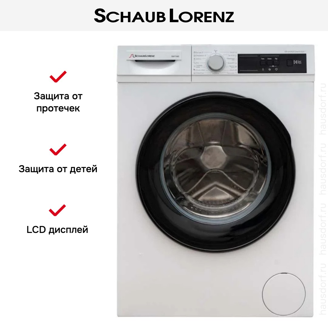 Стиральная машина Schaub Lorenz SLW-T1622 выполнена в лаконичном белом цвете и вписывается в современные интерьеры. Дизайн ориентирован на практичность: белая передняя панель и люк с диаметром 47 см создают аккуратный и строгий образ. Глубина корпуса всего 41,6 см делает прибор удобным для узких кухонь и небольших ванных комнат. Высота 84,5 см и ширина 59,7 см соответствуют стандартным нишам для отдельно стоящих моделей, а масса 60,5 кг говорит о добротной сборке и устойчивости в процессе работы.