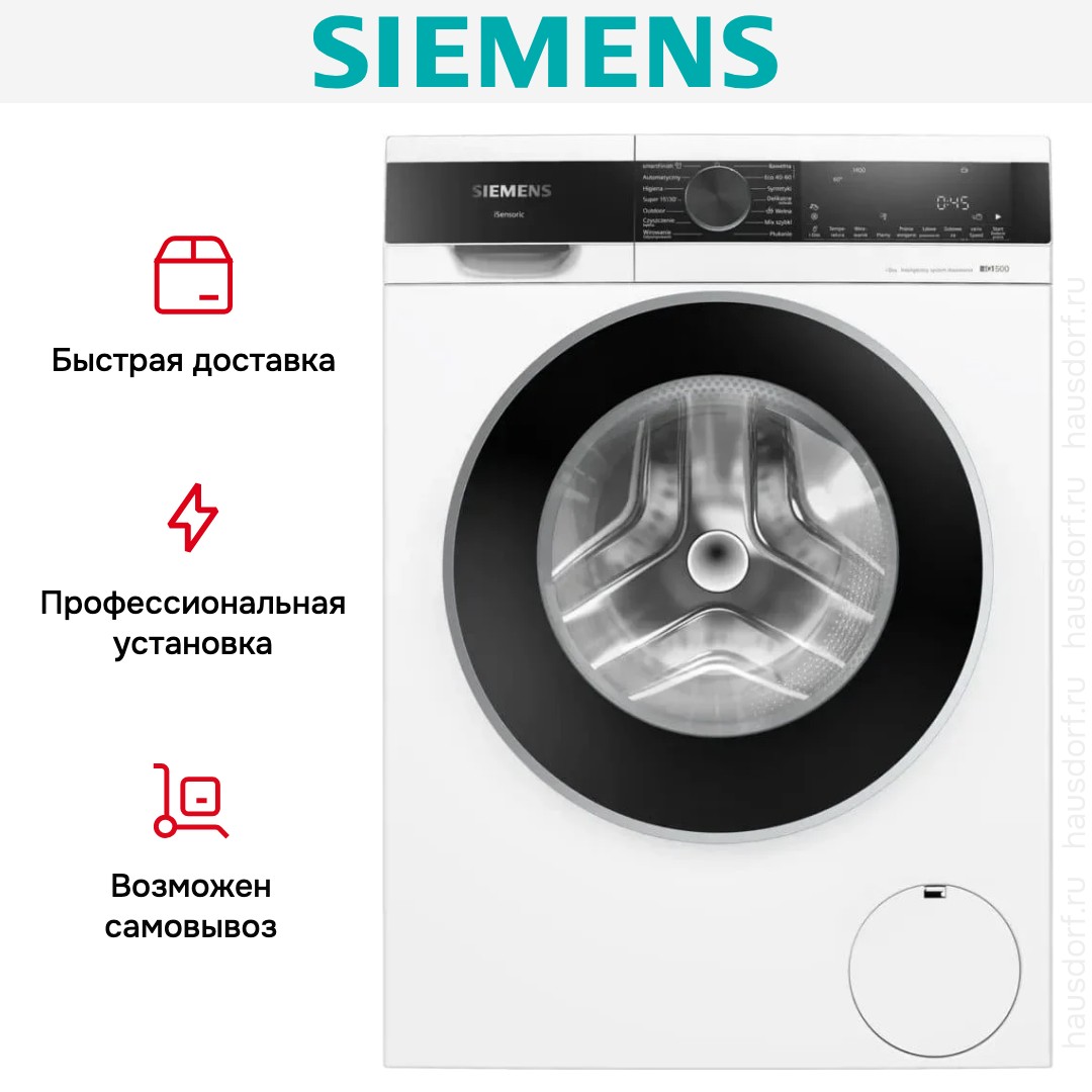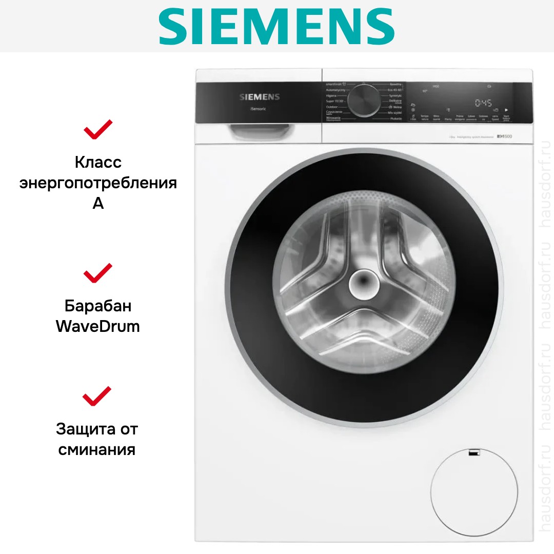 Стиральная машина Siemens WG44G2FWPL имеет стильный дизайн с белым корпусом и контрастным чёрным люком, что делает её органичной в любом современном интерьере. Внешний вид продуман до мелочей: наклонная панель для удобного доступа к органам управления и крупный цифровой дисплей упрощают выбор программ и их контроль. Боковые стенки антивибрационной конструкции уменьшают тряску при отжиме, что не только делает работу тише, но и снижает нагрузку на механизм.