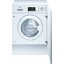 Полностью встраиваемые стиральные машины — один самых распространенных типов, особенно в условиях ограниченного пространства. Они размещаются в тумбах, скрываясь за мебельными фасадами и позволяя таким образом сохранить единство стиля. Вместимость этих устройств варьируется в пределах от 5 до 12 кг белья. Высота их составляет 84-85 см, что является стандартным значением, ширина равна 60 см, глубина же может быть различной. Размещают подобные модели обычно в кухне, а не в ванной, поскольку та имеет меньшую площадь.