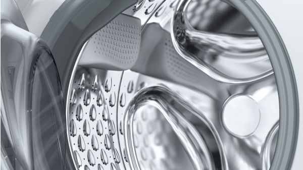 Барабан обычно изготавливается из тонкой нержавеющей стали, отверстия на боковой поверхности могут располагаться по-разному и иметь разную форму. Поверхность барабана в большинстве моделей не является гладкой: на ней находятся выпуклости и впадины для лучшего скольжения белья.