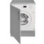 Полностью встраиваемые стиральные машины — один самых распространенных типов, особенно в условиях ограниченного пространства. Они размещаются в тумбах, скрываясь за мебельными фасадами и позволяя таким образом сохранить единство стиля. Вместимость этих устройств варьируется в пределах от 5 до 12 кг белья. Высота их составляет 84-85 см, что является стандартным значением, ширина равна 60 см, глубина же может быть различной. Размещают подобные модели обычно в кухне, а не в ванной, поскольку та имеет меньшую площадь.