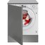 Полностью встраиваемые стиральные машины — один самых распространенных типов, особенно в условиях ограниченного пространства. Они размещаются в тумбах, скрываясь за мебельными фасадами и позволяя таким образом сохранить единство стиля. Вместимость этих устройств варьируется в пределах от 5 до 12 кг белья. Высота их составляет 84-85 см, что является стандартным значением, ширина равна 60 см, глубина же может быть различной. Размещают подобные модели обычно в кухне, а не в ванной, поскольку та имеет меньшую площадь.