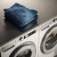 Особенностью этой программы является достаточно высокая температура и продолжительность стирки, поскольку у джинсовых изделий обычно имеются очень толстые швы, которые могут остаться непросушенными. В оптимальном варианте вес загрузки не должен превышать 4 кг, а для более качественной сушки стоит загружать в барабан только одно изделие. Перед загрузкой одежды из джинсовой ткани в машину следует ознакомиться с этикеткой и убедиться, что сушка в машине для них допустима: в противном случае вещь может дать усадку. Также не следует пользоваться это программой, если джинсы украшены декоративными элементами: бисером или стразами, вышивкой, цветными принтами и аппликацией.
