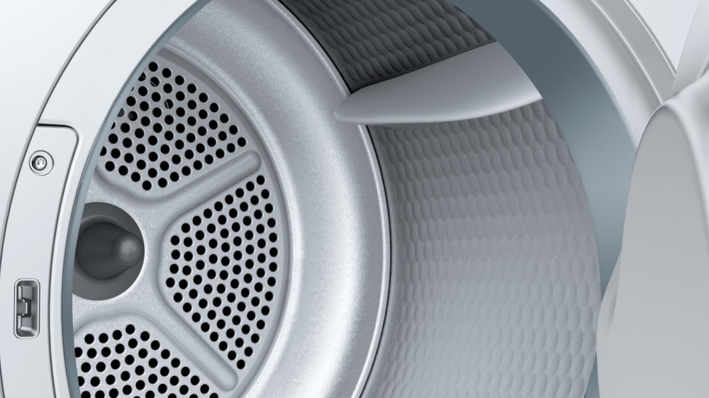 AntiVibration Design в сушильных машинах Bosch — особая конструкция боковых стенок, которая разработана для уменьшения уровня шума и максимальной защиты от вибрации. Благодаря форме стенок жесткость корпуса увеличивается, и машина вибрирует намного меньше даже при сушке на высокой скорости.