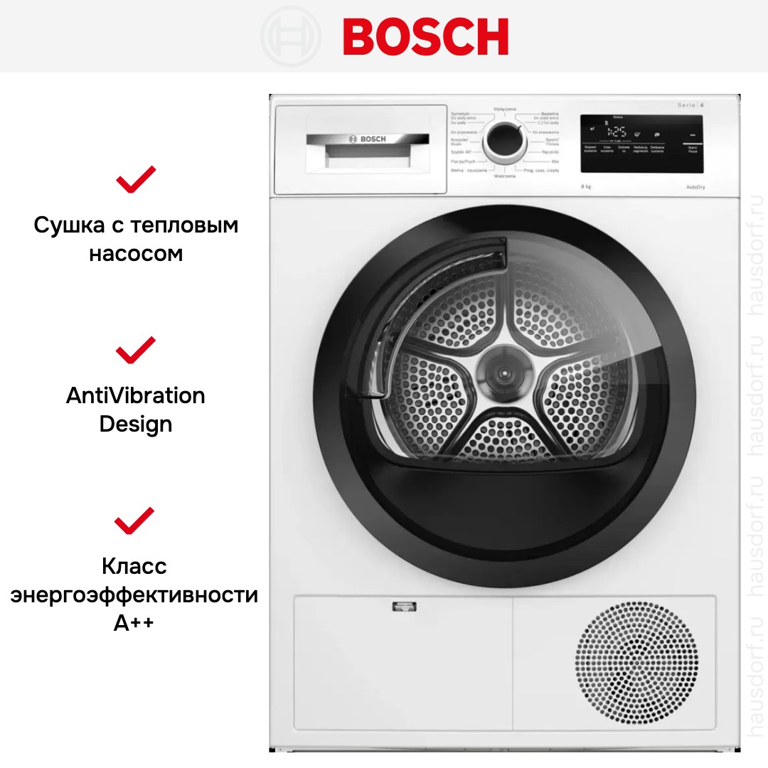 Класс энергопотребления А++ в сушильных машинах Bosch означает, что устройство работает максимально экономично. Благодаря новейшим методам сушки — например, с тепловым насосом, — эти машины потребляют минимальное количество ресурсов и не оказывают вредного воздействия на окружающую среду.