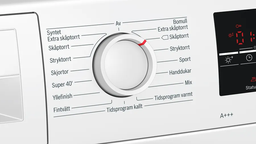 Элементы на панели управления сушильной машины служат для выбора программы сушки, для регулировки параметров работы, для задания дополнительных опций. Большинство сушильных маши оборудовано поворотными переключателями: с их помощью можно легко выбирать программу сушки — по остаточной влажности, по типу ткани, по виду изделий, по времени. Кнопки предназначаются для добавления к программе дополнительных опций: они могут быть как обычными, так сенсорными — в последнем случае все варианты выбора отображаются на дисплее, и возможности управления становятся более удобными и гибкими.