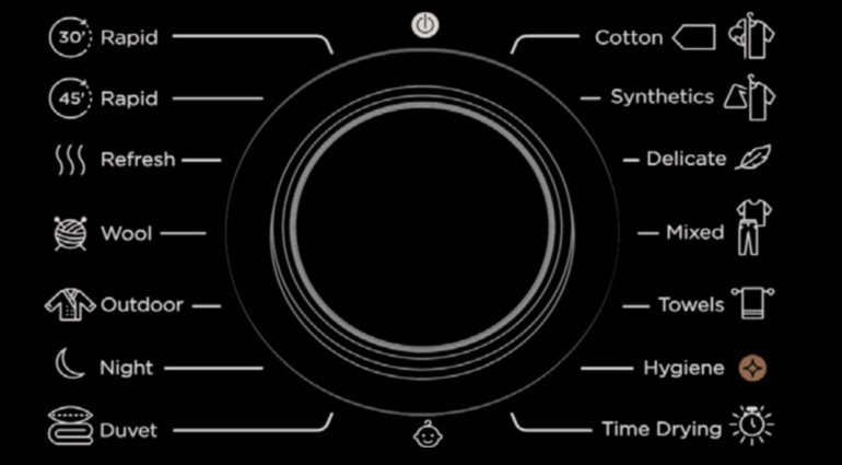 Элементы на панели управления сушильной машины служат для выбора программы сушки, для регулировки параметров работы, для задания дополнительных опций. Большинство сушильных маши оборудовано поворотными переключателями: с их помощью можно легко выбирать программу сушки — по остаточной влажности, по типу ткани, по виду изделий, по времени. Кнопки предназначаются для добавления к программе дополнительных опций: они могут быть как обычными, так сенсорными — в последнем случае все варианты выбора отображаются на дисплее, и возможности управления становятся более удобными и гибкими.