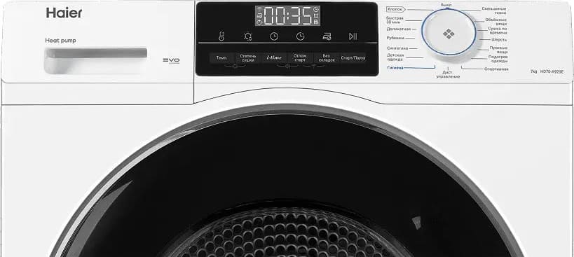 Элементы на панели управления сушильной машины служат для выбора программы сушки, для регулировки параметров работы, для задания дополнительных опций. Большинство сушильных маши оборудовано поворотными переключателями: с их помощью можно легко выбирать программу сушки — по остаточной влажности, по типу ткани, по виду изделий, по времени. Кнопки предназначаются для добавления к программе дополнительных опций: они могут быть как обычными, так сенсорными — в последнем случае все варианты выбора отображаются на дисплее, и возможности управления становятся более удобными и гибкими.