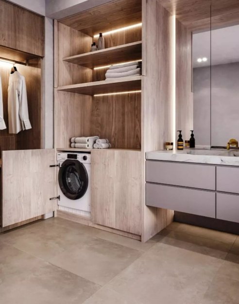 Ширину сушильной машины следует учитывать при любом варианте установки. Стандартное значение этого показателя составляет 59-60 см: такие устройства подходят для установки в колонну со стиральными или бок-о-бок с ними, а также для встраивания под столешницу или в кухонную тумбу. Они являются наиболее востребованными благодаря достаточно большому весу загрузки. Наименьшая ширина сушилок составляет 55-56 см, а максимальное значение этого параметра достигает 70 см. Самой большой шириной отличаются модели для профессионального использования, рассчитанные на увеличенный вес загрузки.