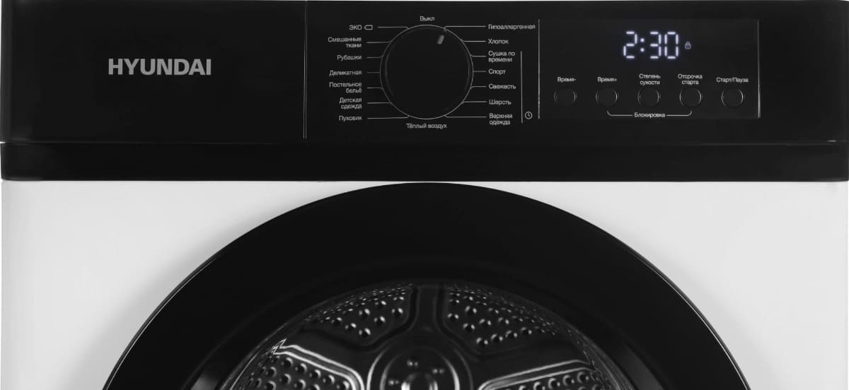 Сушильная машина Hyundai предназначена для домашнего использования, поэтому имеет стандартные габариты и большое разнообразие программ. Так как она устанавливается отдельно, нужно заранее найти достаточно места в помещении.