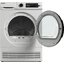- Тепловой насос — поступающий внутрь воздух нагревается, что ускоряет и улучшает эффективность сушки. Затем он проходит через конденсационный отдел, отдает влагу и сухим повторно возвращается в барабан.