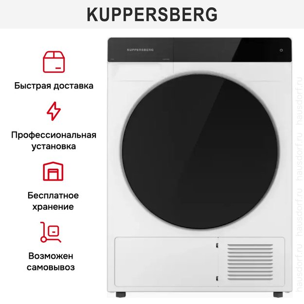 Сушильная машина Kuppersberg предназначена для домашнего использования, поэтому имеет стандартные габариты и большое разнообразие программ. Так как она устанавливается отдельно, нужно заранее найти достаточно места в помещении.