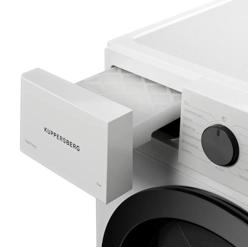 Сушильная машина Kuppersberg предназначена для домашнего использования, поэтому имеет стандартные габариты и большое разнообразие программ. Так как она устанавливается отдельно, нужно заранее найти достаточно места в помещении.