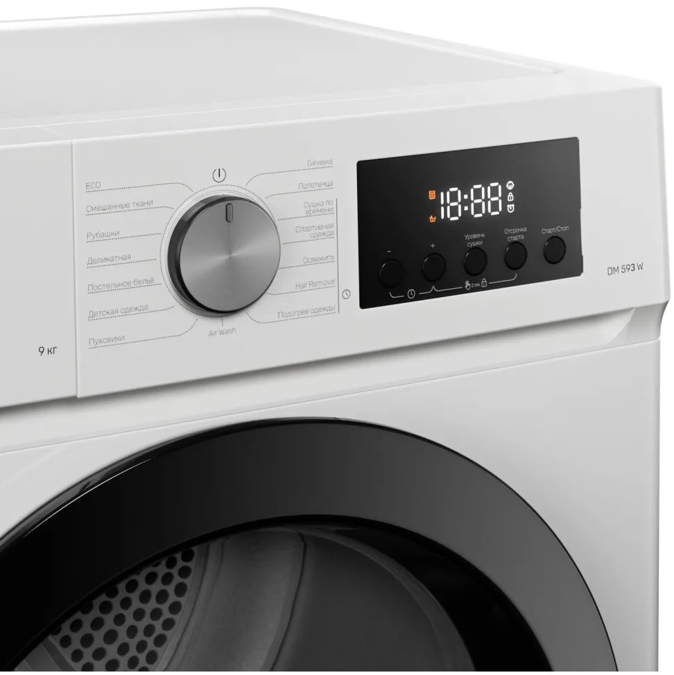 Элементы на панели управления сушильной машины служат для выбора программы сушки, для регулировки параметров работы, для задания дополнительных опций. Большинство сушильных маши оборудовано поворотными переключателями: с их помощью можно легко выбирать программу сушки — по остаточной влажности, по типу ткани, по виду изделий, по времени. Кнопки предназначаются для добавления к программе дополнительных опций: они могут быть как обычными, так сенсорными — в последнем случае все варианты выбора отображаются на дисплее, и возможности управления становятся более удобными и гибкими.