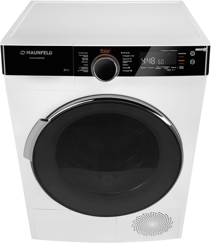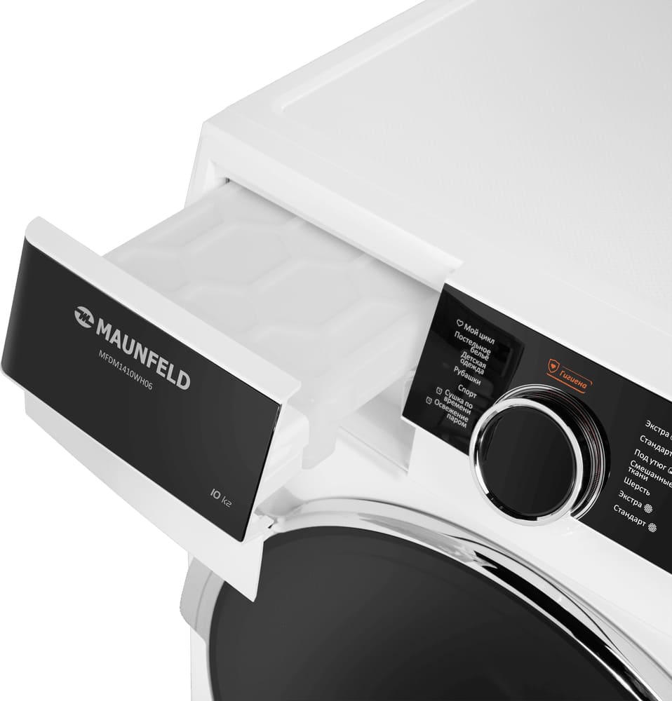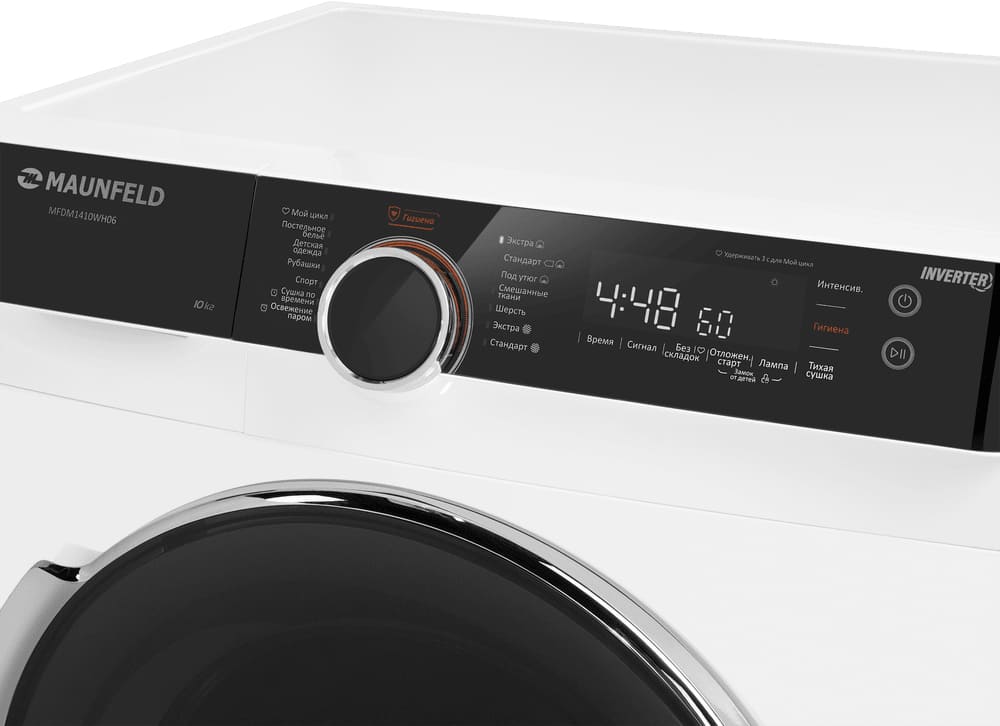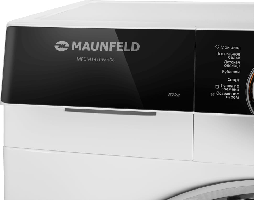 Сушильная машина Maunfeld предназначена для домашнего использования, поэтому имеет стандартные габариты и большое разнообразие программ. Так как она устанавливается отдельно, нужно заранее найти достаточно места в помещении. Особенности, на которые нужно обратить внимание при размещении: возможность установки в колонну. Колонна — это название для совместной установки со стиральной машиной друг на друга, обычно для этого нужен специальный крепежный элемент.