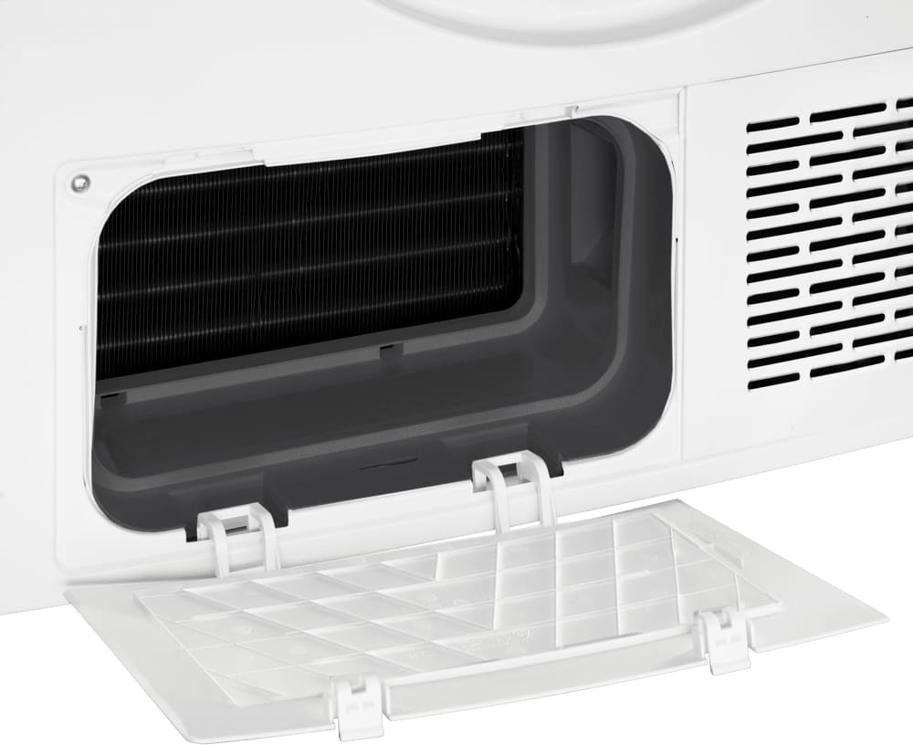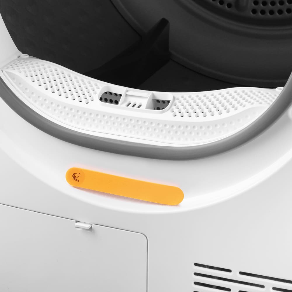Сушильные машины конденсационного типа, как и устройства с тепловым насосом, не требуют присоединения к системе вентиляции и подключаются только к электросети. Конденсат, который удаляется из загруженного белья, стекает в специальный контейнер. Он расположен так, чтобы его извлечение было максимально удобным — например, в верхней части корпуса, там, где у стиральных машин находится лоток для порошка. Опустошать этот контейнер необходимо вручную — как правило, после завершения каждого цикла работы. О необходимости слива конденсата предупреждает специальный индикатор на панели управления.