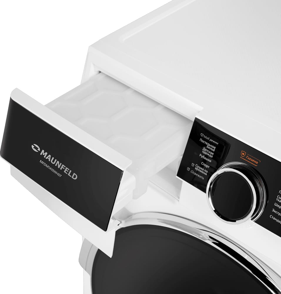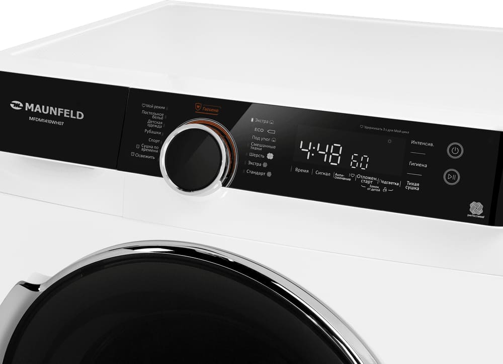 Сушильная машина Maunfeld предназначена для домашнего использования, поэтому имеет стандартные габариты и большое разнообразие программ. Так как она устанавливается отдельно, нужно заранее найти достаточно места в помещении.