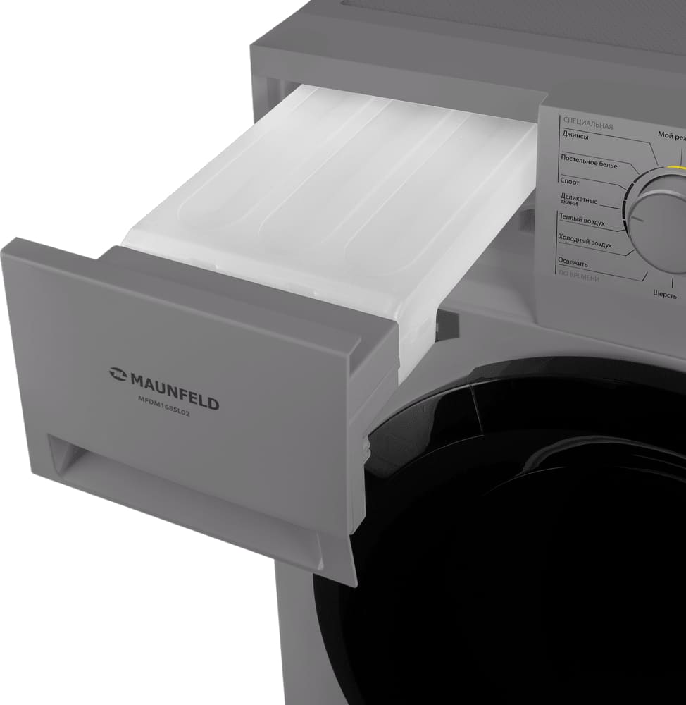 Сушильная машина Maunfeld предназначена для домашнего использования, поэтому имеет стандартные габариты и большое разнообразие программ. Так как она устанавливается отдельно, нужно заранее найти достаточно места в помещении.
