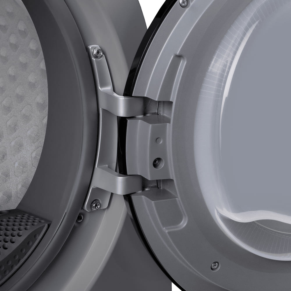Тип сушки белья в данной модели — тепловой насос. Благодаря этому воздух поступает в барабан уже теплым, что ускоряет работу.