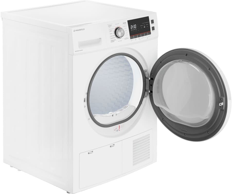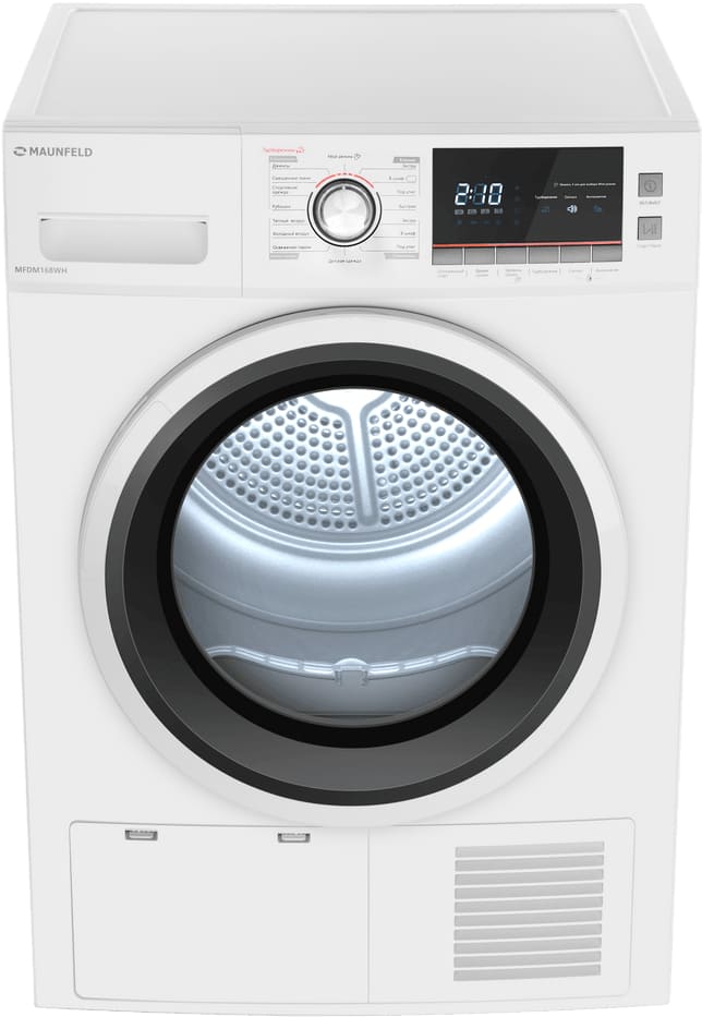 Сушильная машина Maunfeld предназначена для домашнего использования, поэтому имеет стандартные габариты и большое разнообразие программ. Так как она устанавливается отдельно, нужно заранее найти достаточно места в помещении. Особенности, на которые нужно обратить внимание при размещении: возможность установки в колонну. Колонна — это название для совместной установки со стиральной машиной друг на друга, обычно для этого нужен специальный крепежный элемент.