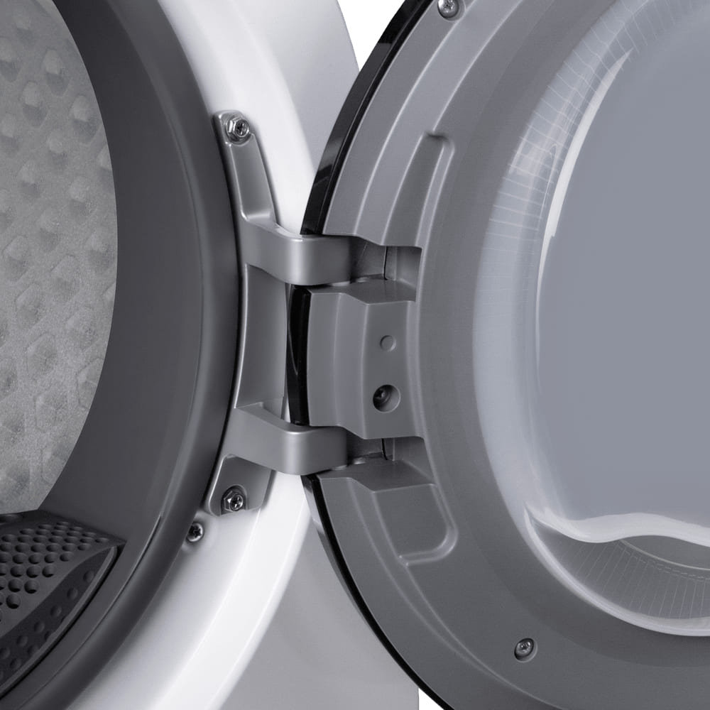 Тип сушки белья в данной модели — тепловой насос. Благодаря этому воздух поступает в барабан уже теплым, что ускоряет работу.