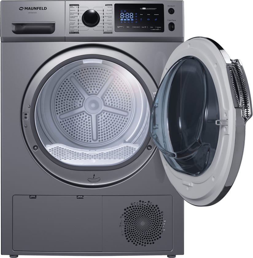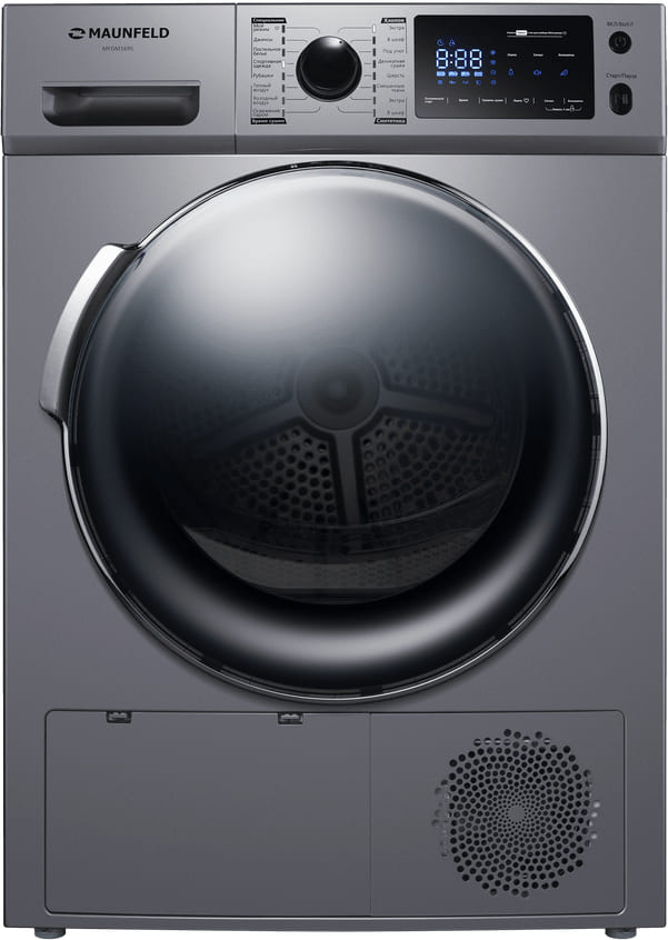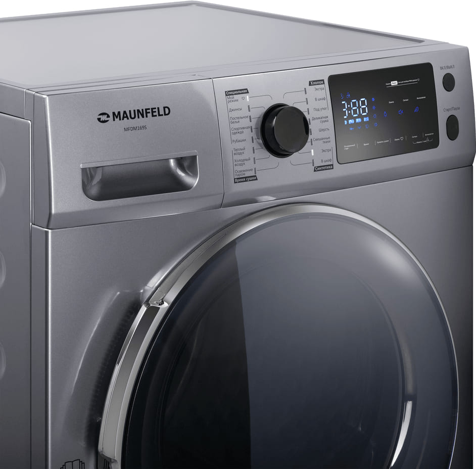 Сушильная машина Maunfeld предназначена для домашнего использования, поэтому имеет стандартные габариты и большое разнообразие программ. Так как она устанавливается отдельно, нужно заранее найти достаточно места в помещении. Особенности, на которые нужно обратить внимание при размещении: возможность установки в колонну. Колонна — это название для совместной установки со стиральной машиной друг на друга, обычно для этого нужен специальный крепежный элемент.