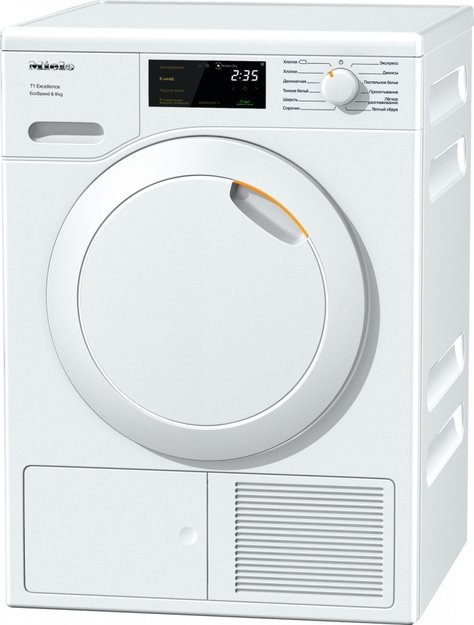 Модель цвета «белый лотос» высотой 85 см подойдет также для установки под столешницу. Сушка с компрессором Heat Pump позволяет сэкономить до 50% электроэнергии благодаря повторному использованию теплого воздуха. На панели управления находятся поворотный переключатель и дисплей DirectSensor. С помощью двенадцати предустановленных программ производится сушка смешанного белья, рубашек, верхней одежды, шерсти и шелка, пропитывание вещей с защитой от влаги. Предусмотрены специальные программы для сушки подушек, разглаживания, сушки обуви в корзине. Высокоэффективный фильтр большой площади служит для защиты от ворса и легко чистится благодаря расположению на фронтальной части. Инновационный двигатель ProfiEco отличается низким уровнем шума. Сотовый барабан с мягкими ребрами и реверсивным ходом не позволяет вещам запутываться. Функция FragranceDos позволяет ароматизировать белье: для этого служит специальный флакон с ароматизатором. Система PerfectDry анализирует остаточную влажность белья и не допускает пересушивания. Опция AddLoad позволяет дозагрузить вещи, даже если цикл уже начался. Таймер поможет отложить старт на срок до 24 часов.