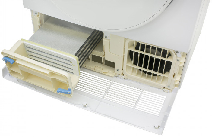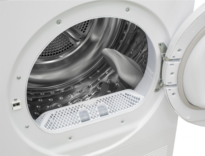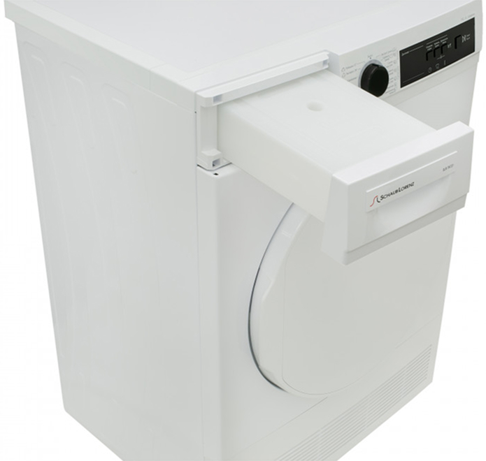 Сушильные машины конденсационного типа, как и устройства с тепловым насосом, не требуют присоединения к системе вентиляции и подключаются только к электросети. Конденсат, который удаляется из загруженного белья, стекает в специальный контейнер. Он расположен так, чтобы его извлечение было максимально удобным — например, в верхней части корпуса, там, где у стиральных машин находится лоток для порошка. Опустошать этот контейнер необходимо вручную — как правило, после завершения каждого цикла работы. О необходимости слива конденсата предупреждает специальный индикатор на панели управления.