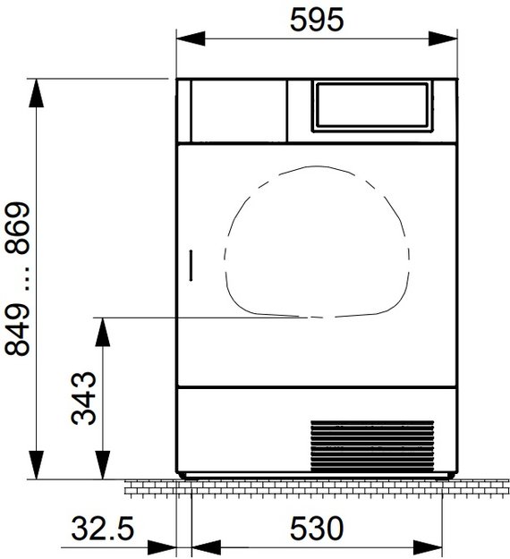 Высота сушильной машины составляет 82-85 см, благодаря чему ее можно разместить под столешницей — например, в ванной рядом с раковиной. У некоторых моделей высоту прибора можно уменьшить, сняв верхнюю крышку и заменив специальной технологической крышкой для встраивания или металлической плитой.