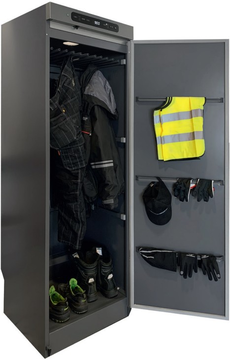 Воздух снаружи поступает в камеру, проходя через нагреватель, обволакивает одежду, вытягивает влагу — и уже влажный воздух выводится через специальный шланг.