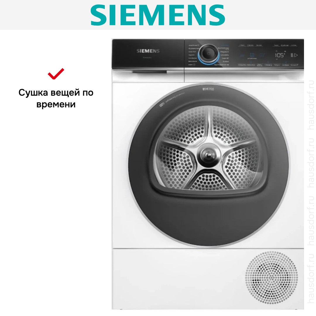 Сушильная машина Siemens предназначена для домашнего использования, поэтому имеет стандартные габариты и большое разнообразие программ. Так как она устанавливается отдельно, нужно заранее найти достаточно места в помещении.