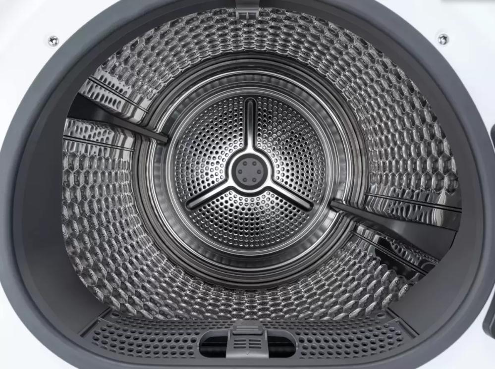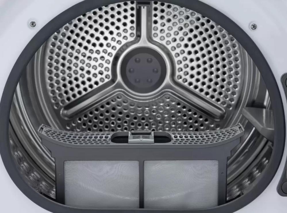 - Тепловой насос — поступающий внутрь воздух нагревается, что ускоряет и улучшает эффективность сушки. Затем он проходит через конденсационный отдел, отдает влагу и сухим повторно возвращается в барабан.