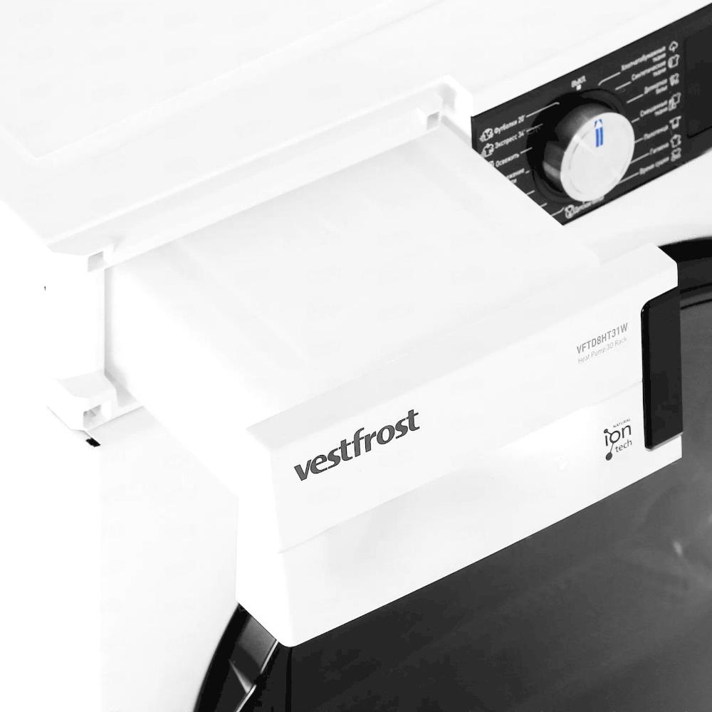 Сушильная машина Vestfrost предназначена для домашнего использования, поэтому имеет стандартные габариты и большое разнообразие программ. Так как она устанавливается отдельно, нужно заранее найти достаточно места в помещении. Особенности, на которые нужно обратить внимание при размещении: возможность установки в колонну. Колонна — это название для совместной установки со стиральной машиной друг на друга, обычно для этого нужен специальный крепежный элемент.