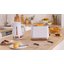 Двумя отделениями для тостов оснащается большинство современных тостеров. Приготовление двух ломтиков хлеба особенно удобно по утрам, когда время для приготовления завтрака для всей семьи ограничено. Для них задается одна и та же степень поджаривания, а готовые тосты выбрасываются одновременно.