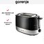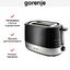 Стильный тостер Gorenje имеет компактный корпус на устойчивых ножках, благодаря которым не пошатывается, даже если хлеб выпрыгивает вверх в конце приготовления. Основной материал, из которого изготовлен прибор, — пластик/ сталь. Его главный оттенок — черный. Простое и понятное механическое управление позволяет быстро разобраться во всех функциях. Простое и понятное электронное управление позволяет быстро разобраться во всех функциях. На корпусе расположены кнопочные+поворотные переключатели для изменения настроек.