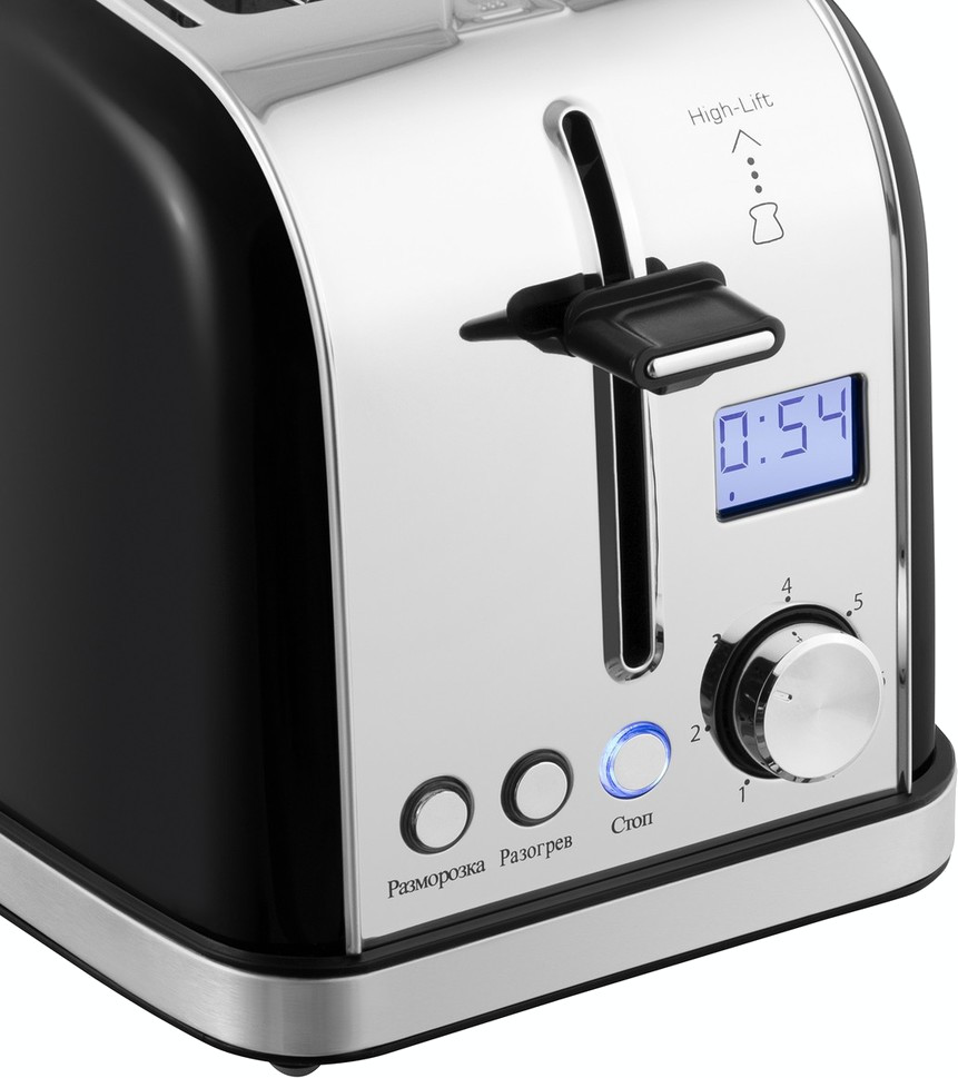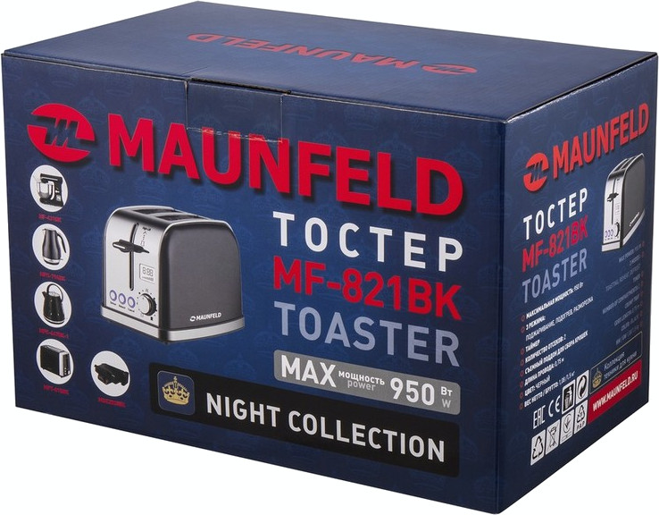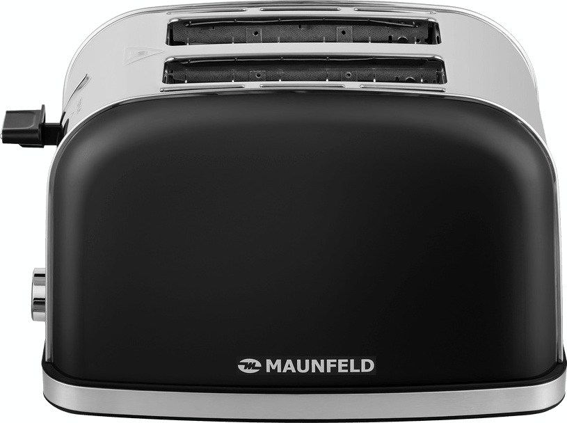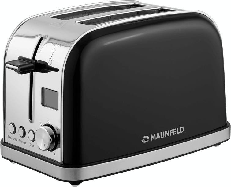 Стильный тостер Maunfeld имеет компактный корпус на устойчивых ножках, благодаря которым не пошатывается, даже если хлеб выпрыгивает вверх в конце приготовления. Основной материал, из которого изготовлен прибор, — нержавеющая сталь. Его главный оттенок — черный. Простое и понятное механическое управление позволяет быстро разобраться во всех функциях. Простое и понятное электронное управление позволяет быстро разобраться во всех функциях. На корпусе расположены кнопочные+поворотные переключатели для изменения настроек. Благодаря небольшому дисплею еще удобнее следить за процессом.