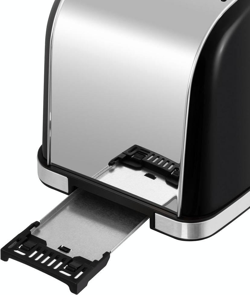 Поддон для крошек — удобная и практичная принадлежность большинства современных тостеров, которая предназначается для того, чтобы крошки не попадали на столешницу и не застревали в отверстиях для размещения ломтиков. Он изготавливается из нержавеющей стали, устойчивой к высоким температурам.