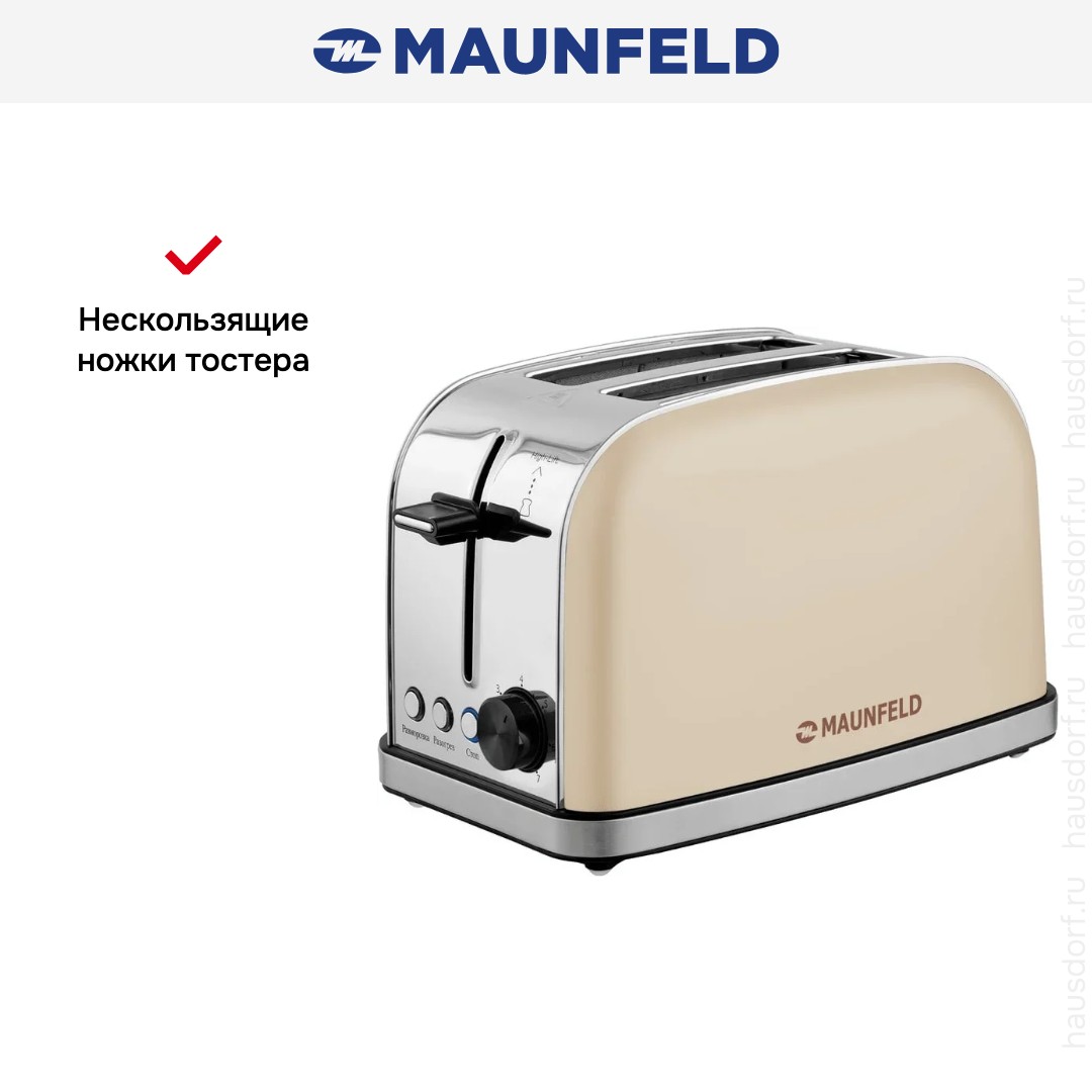 Две отделения рассчитаны на одновременную обработку двух тостов, что удобно для пар или небольшой семьи. Автоматическое центрирование ломтиков гарантирует равномерное поджаривание по всей поверхности. Мощность 950 Вт обеспечивает сбалансированное сочетание скорости и экономии электроэнергии при напряжении 220-240 В и частоте 50-60 Гц. Длина сетевого шнура 0,75 м рассчитана на стандартные кухонные розетки, а нескользящие ножки предотвращают смещение корпуса во время эксплуатации.