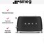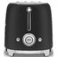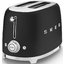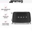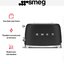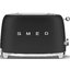 Тостер Smeg TSF01BLMEU — компактная и эстетичная модель весом всего в 2,4 кг. Она выглядит стильно и сдержанно благодаря черной матовой отделке. Цвет основания и верхней панели — полированный хром. Внешняя панель изготовлена из высококачественного пластика. Механическое управление настолько простое и легкое, что с ним может справиться даже ребенок.