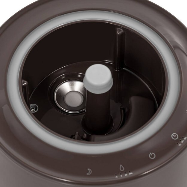 Электронное управление работой увлажнителя воздуха Bork позволяет регулировать параметры одним нажатием кнопки, а информативный дисплей демонстрирует текущие характеристики работы. Отсутствие выступающих регуляторов на корпусе создает лаконичный дизайн.