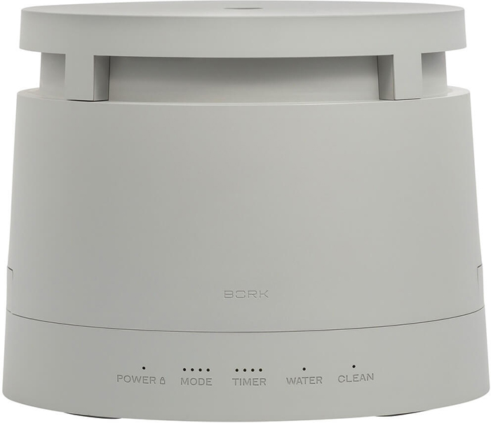 Электронное управление работой увлажнителя воздуха Bork позволяет регулировать параметры одним нажатием кнопки, а информативный дисплей демонстрирует текущие характеристики работы. Отсутствие выступающих регуляторов на корпусе создает лаконичный дизайн.