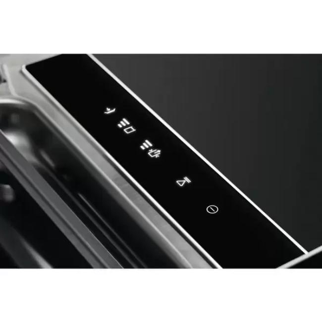 Большая часть встраиваемых вакуумных упаковщиков оснащается электронной сенсорной панелью управления с системой индикации. Сенсорные кнопки позволяют включать и выключать прибор, выбирать режим работы — вакуумирование в пакете или контейнере, степень вакуумирования или досрочное запаивание пакета. Преимущество их состоит в лучшей защите от влаги. Отдельная кнопка отвечает за активацию цикла сухого прогона для удаления влаги, которая может попасть в масляный насос. Предусмотрена кнопка Стоп для экстренного прекращения работы, а также кнопка «Внимание», оповещающая о возникших неисправностях. У некоторых моделей кнопка включения и выключения и кнопка «Стоп» делается механической, а не сенсорной.