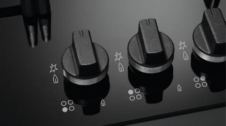 Стильные не нагревающиеся поворотные ручки фиксируются на каждом уровне, а на панели управления подсвечиваются возможные значения мощности. Поворотом этой же ручки до упора можно зажечь конфорку без зажигалок или спичек — для этого используется функция электрического поджига. Для защиты от утечки газа при случайном угасании пламени предусмотрена система «Газ-контроль».