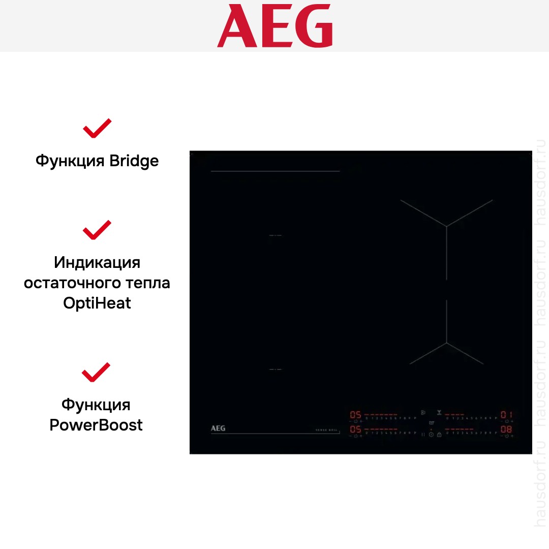 Модель АЕГ V64IIB30IB входит в дизайн-линейку: SenseBoil®. Цвет — черный. Благодаря отсутствию рамки она отлично впишется в интерьер и не займет лишнее место на столешнице, которое можно использовать для работы. Материал самой поверхности: стеклокерамика. Управление этой моделью электронное. Для переключения уровней нагрева, выбора функций используются следующие переключатели: сенсорные/TouchControl, сенсорный слайдер/TouchSlider. Продвинутая система контроля за прибором делают его современным и отвечающим на главные запросы покупателя.